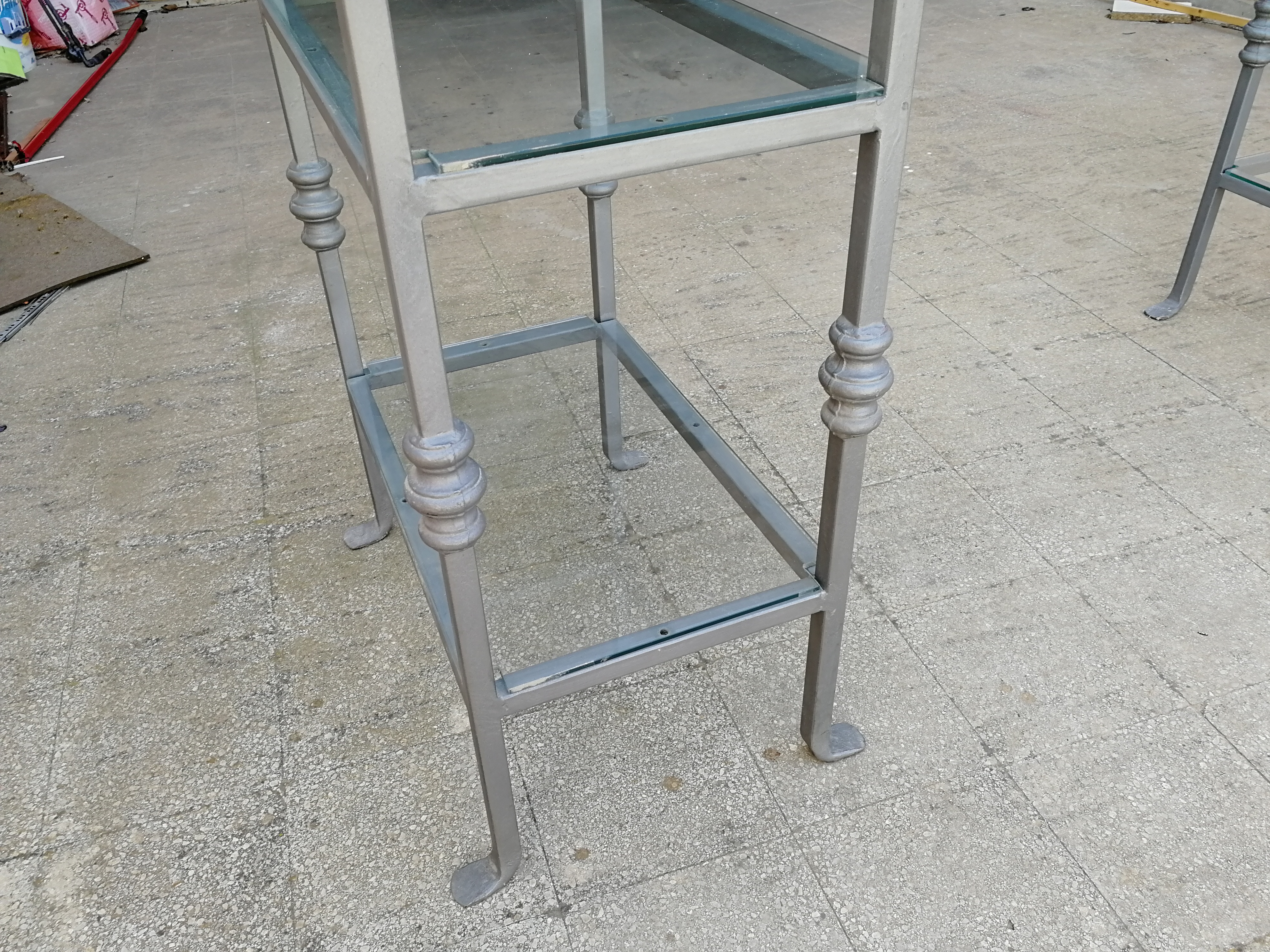 Vendo, per chiusura negozio di bigiotteria e articoli da regalo, tavolo realizzato da un fabbro, in ferro battuto e vetro. Tavolo molto bello e lineare, in ottimo stato.Il tavolo ha un ingombro complessivo di 230cm x 60 cm (base di vetro superiore). Altezza 80cm. Sono presenti quattro mensole, due per ciascun lato, di 30cmx50cm. Inoltre, se interessati, è disponibile anche una vetrinetta da abbinare al tavolo, con stesso disegno, realizzato sempre in ferro battuto e vetro. Le misure della vetrina sono: 130 cm (lunghezza), 32 cm (profondità) e 150 cm (altezza). Se interessati vi invio le foto.