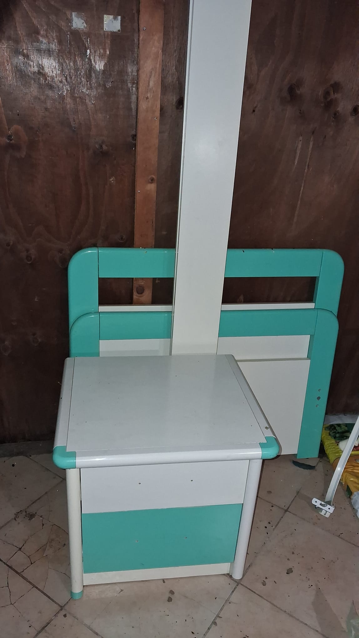 Armadio a ponte bianco e verde. Con cassetti e testata letto. In buono stato. Da smontare a carico dell'acquirente.