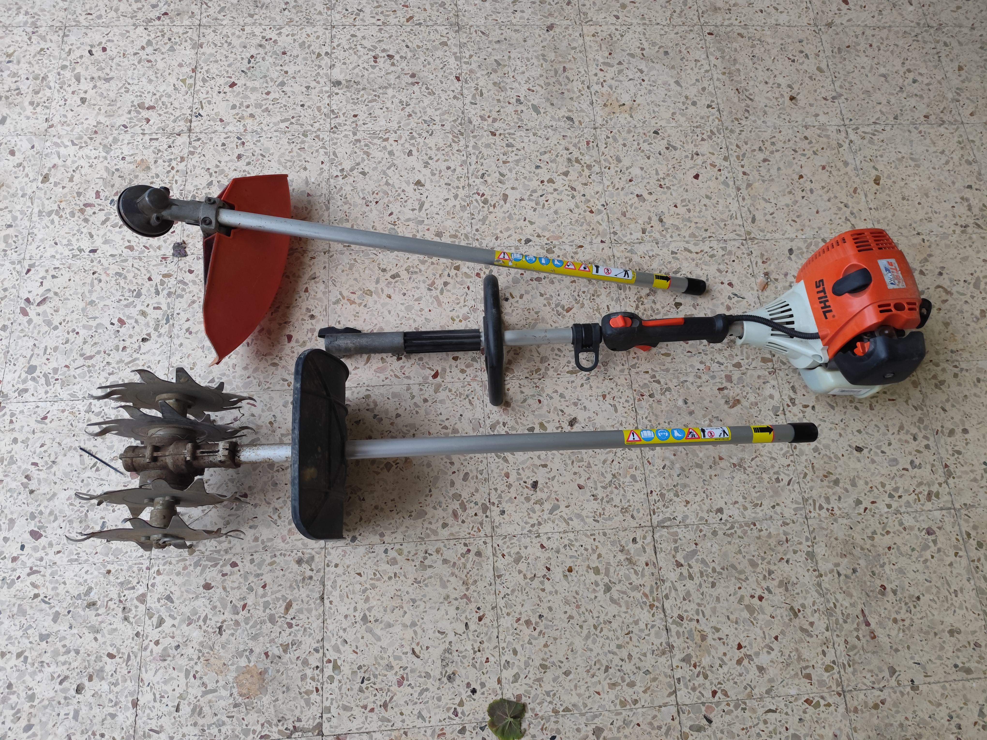 Set combinato Stihl, ideale per la cura completa del giardino, orto e aree verdi. Il kit include il potente motore Kombi KM 90 R e l'accessorio fresa per terreno BF-KM. Accessorio ideale per il dissodamento di terreni e l'arieggiatura di prati. Particolarmente comoda per lavori di coltivazione in spazi ristretti grazie al suo peso contenuto (4,1 kg) e alla lunghezza di 103 cm. Frantuma facilmente anche terreni pesanti e argillosi. Usato, ma tenuto in ottime condizioni. Perfettamente funzionante.