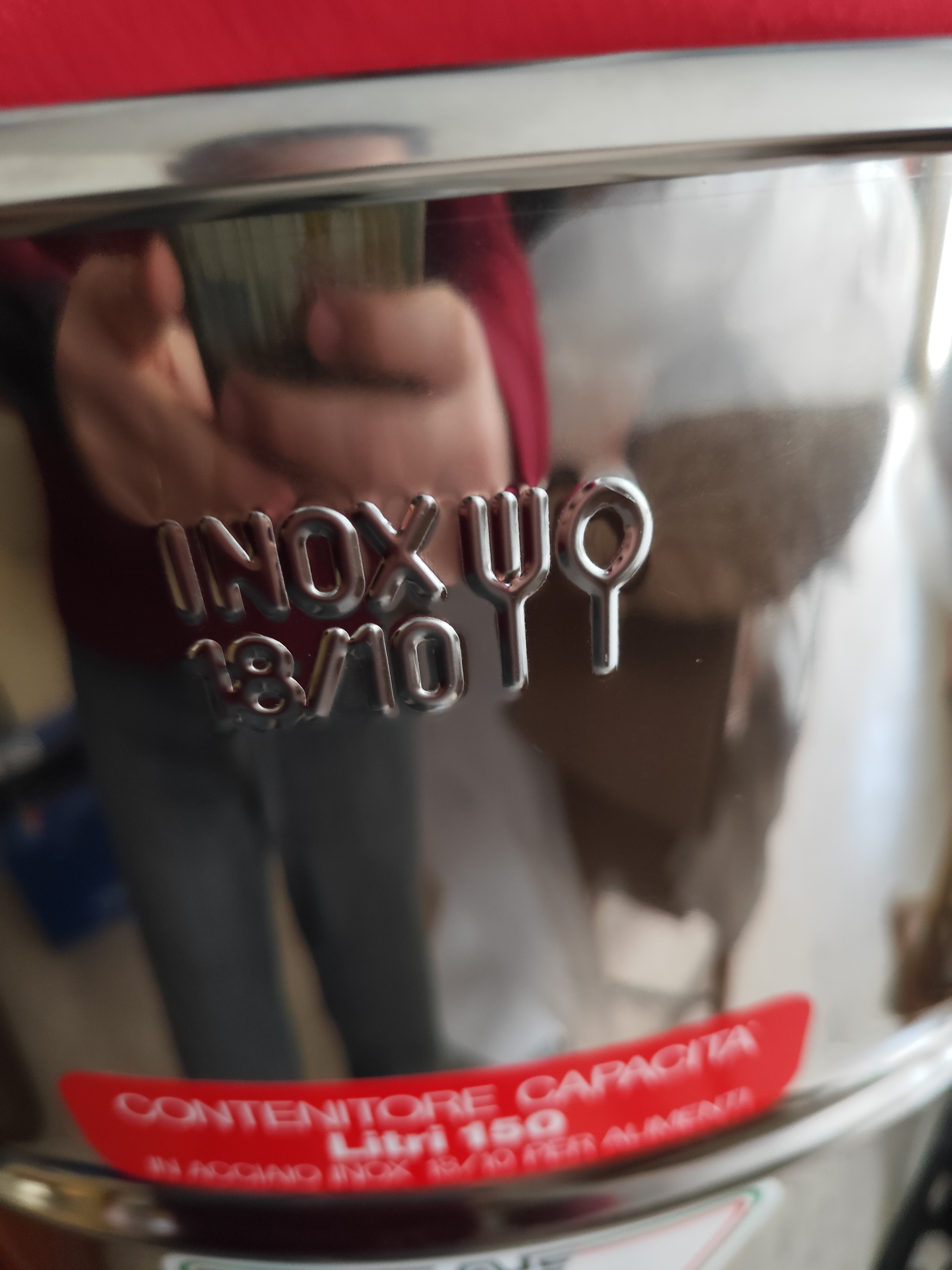 In acciaio inox da 150 litri con rubinetto. Ideale per vino o olio. Usato con conservare l'olio di olive. Supporto incluso. Coperchio incluso. Perfetto, come nuovo. Altezza approssimativa: 80cm contenitore (115cm con supporto). Diametro approssimativo: 55cm.