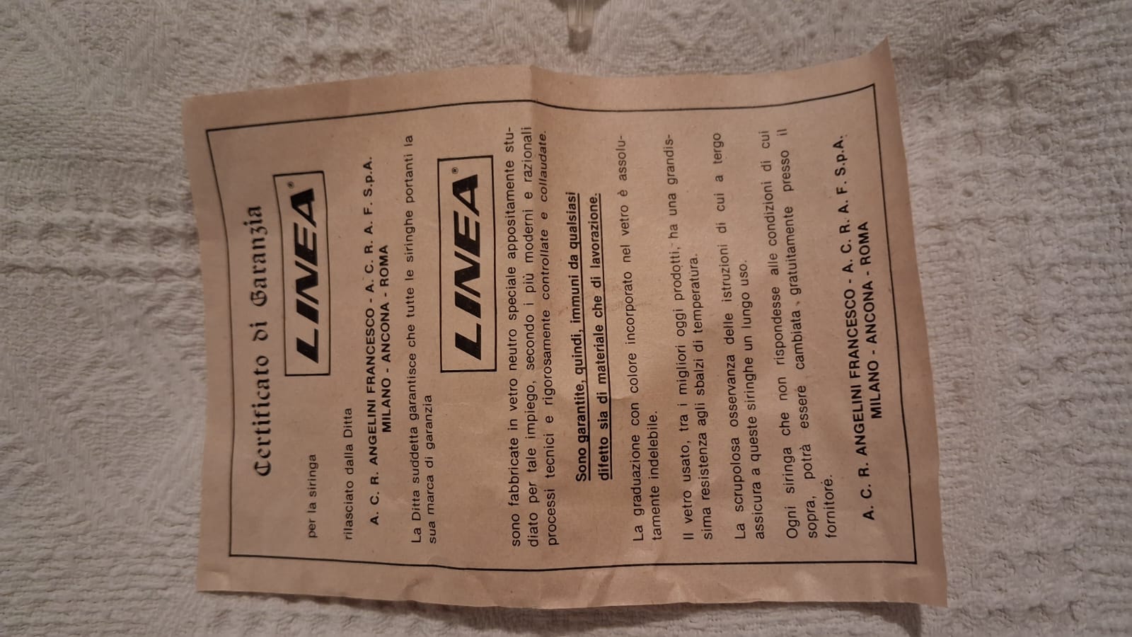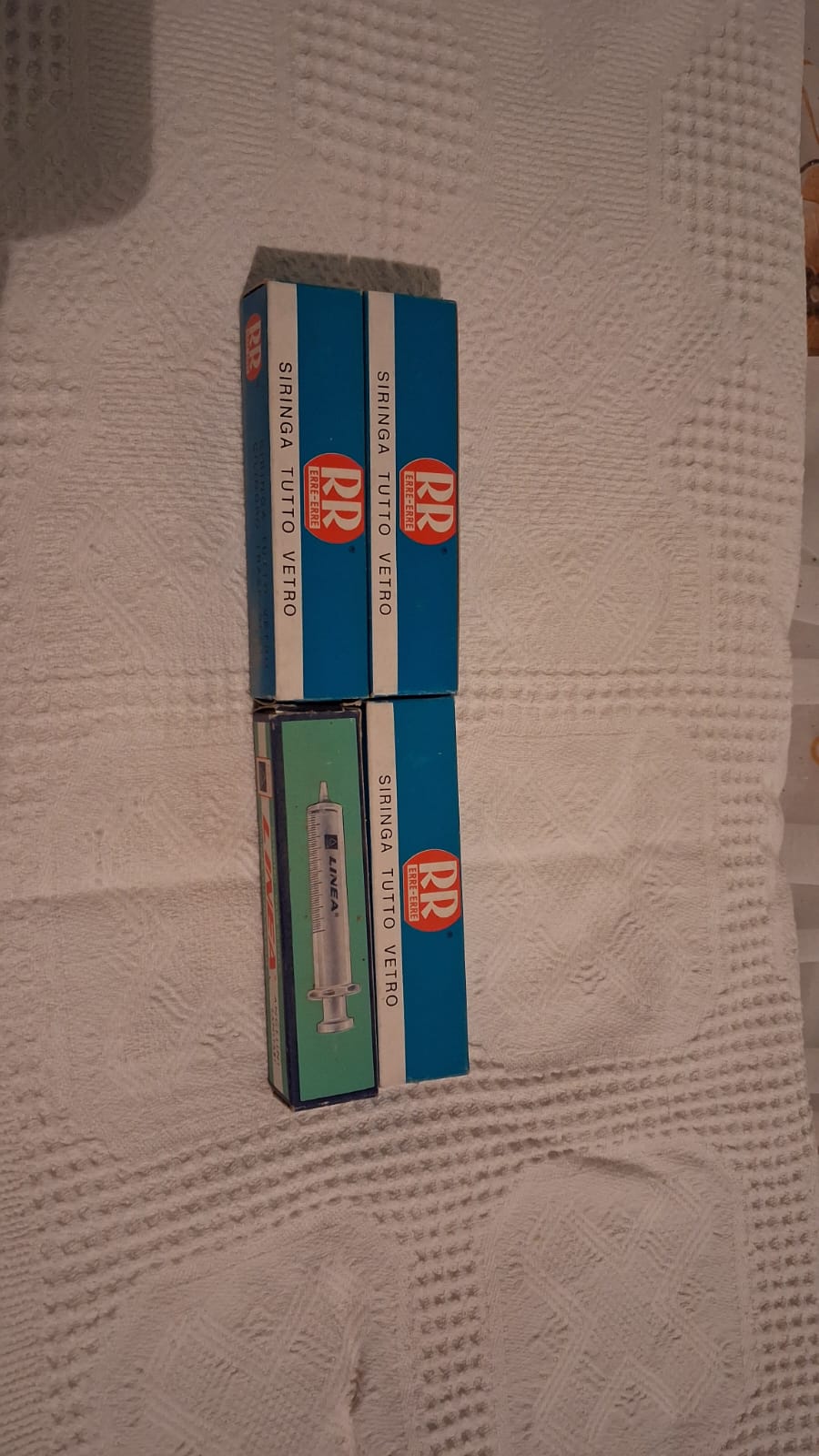 Marche: Erre-Erre (3, scatolo blu). Linea-Angelini (2, scatolo verde). 5 siringhe, 2 hanno il certificato di garanzia